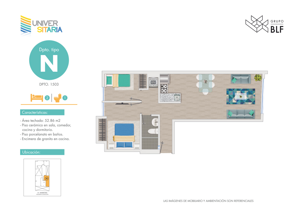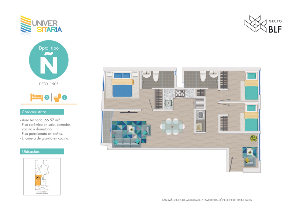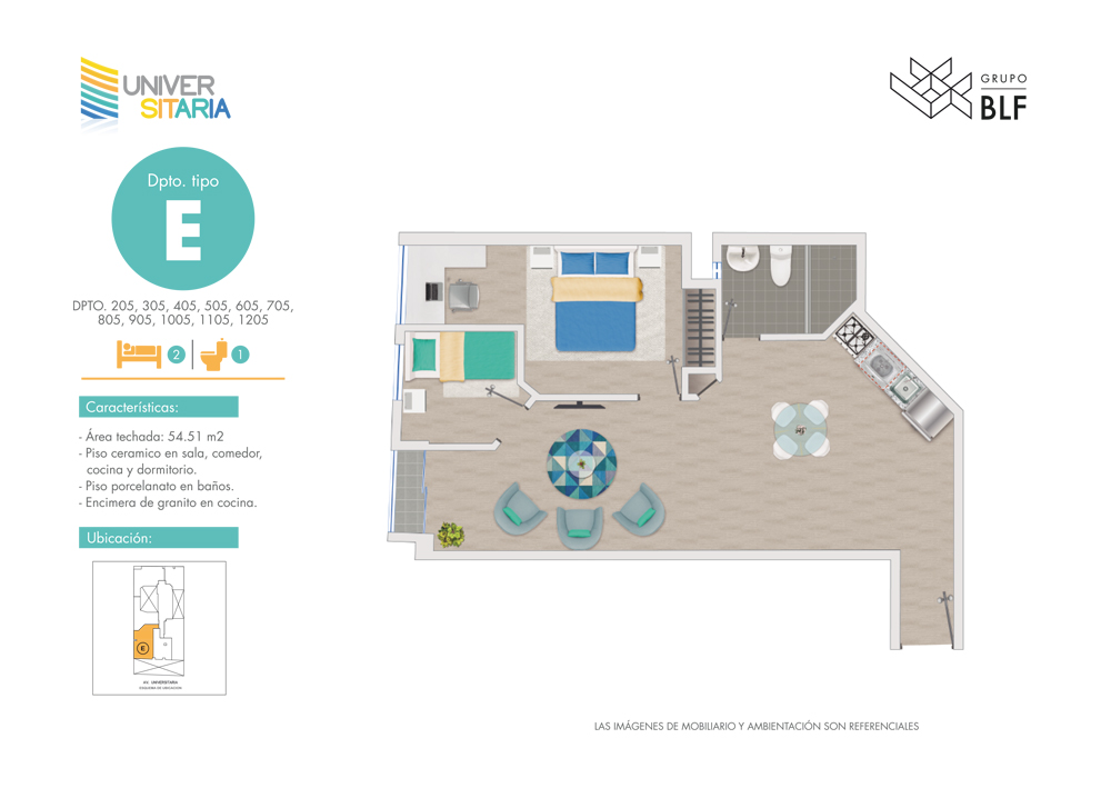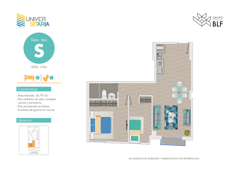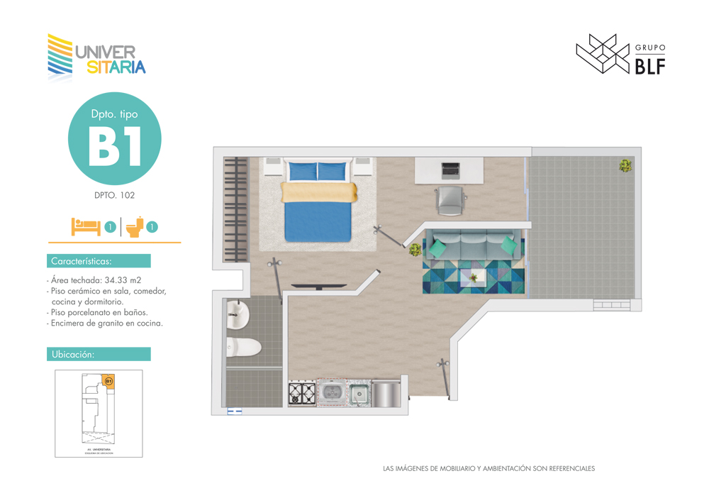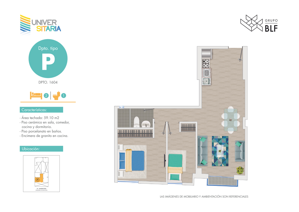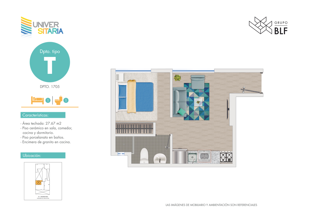 Una propuesta inmobiliaria enfocada en cubrir las necesidades de vivienda y seguridad de los estudiantes. Una gran propuesta inmobiliaria con una oferta de 104 departamentos tipo flat de 1,2 y 3 dormitorios que van desde 28 m2 hasta los 79 m2 para cubrir en gran parte la demanda existente.