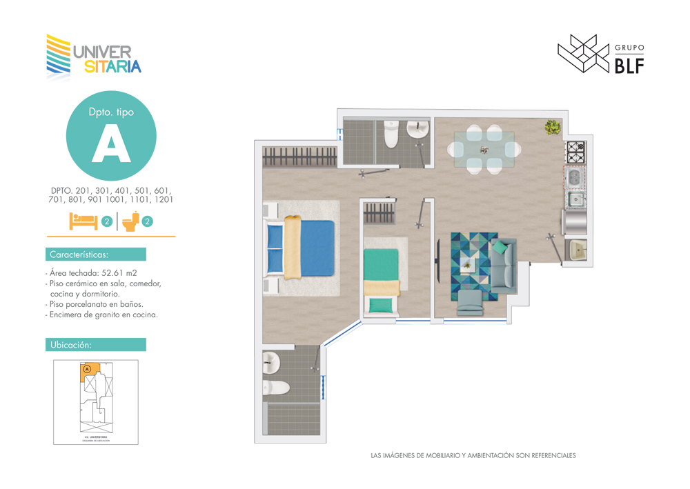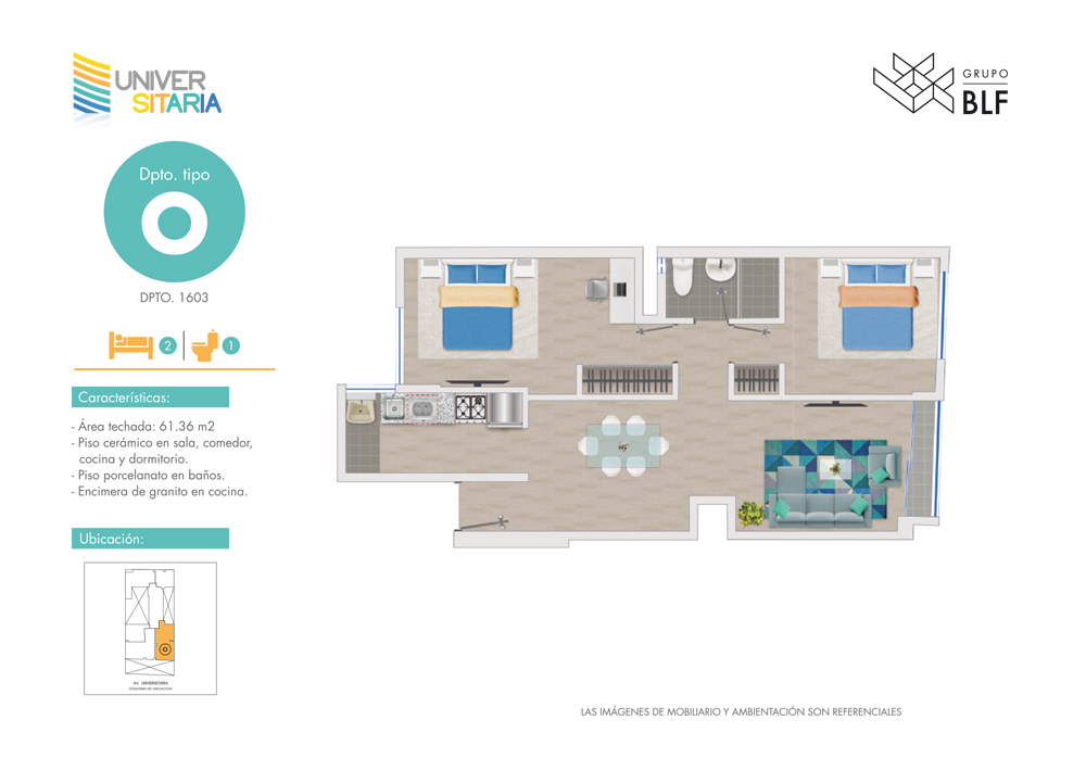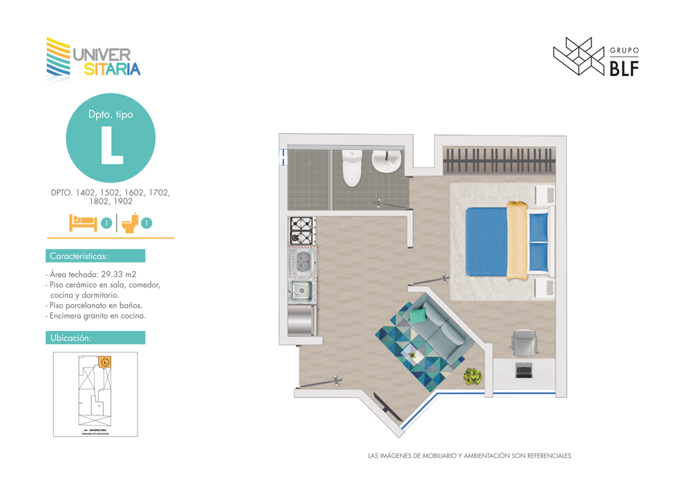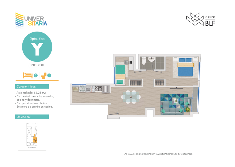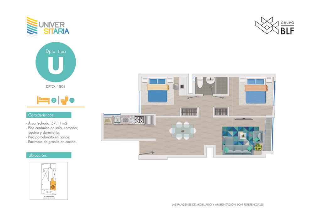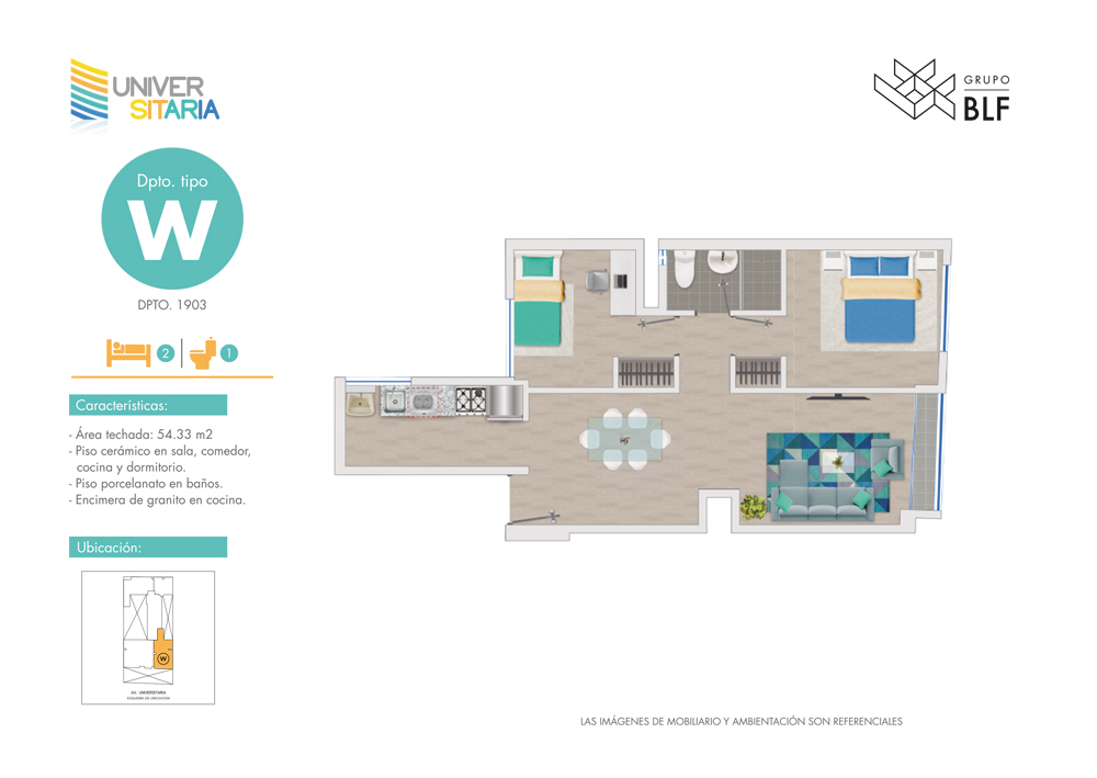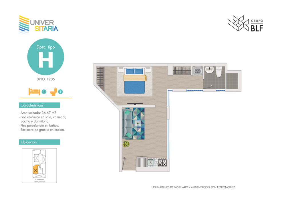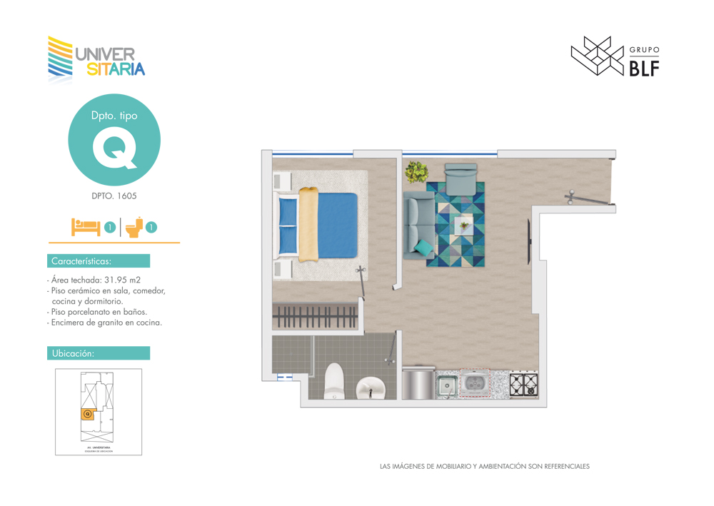 Una propuesta inmobiliaria enfocada en cubrir las necesidades de vivienda y seguridad de los estudiantes. Una gran propuesta inmobiliaria con una oferta de 104 departamentos tipo flat de 1,2 y 3 dormitorios que van desde 28 m2 hasta los 79 m2 para cubrir en gran parte la demanda existente.