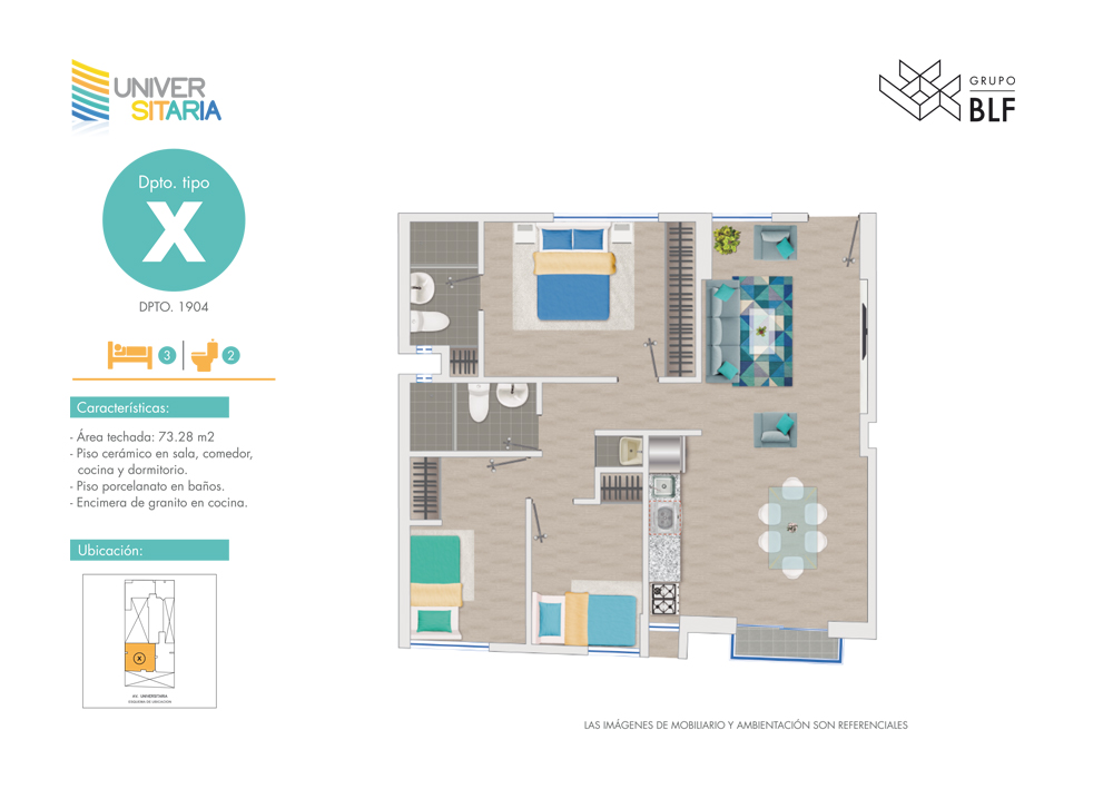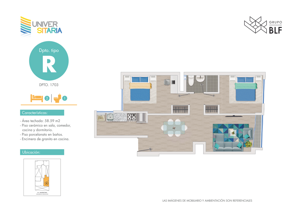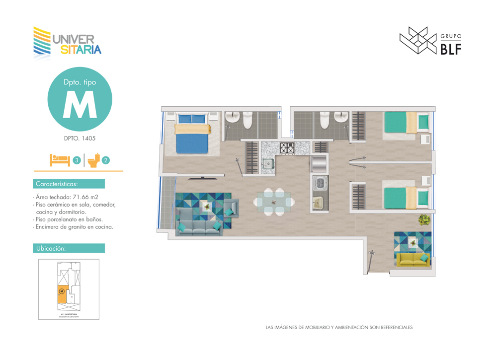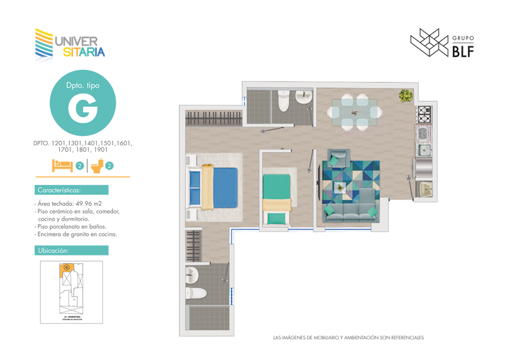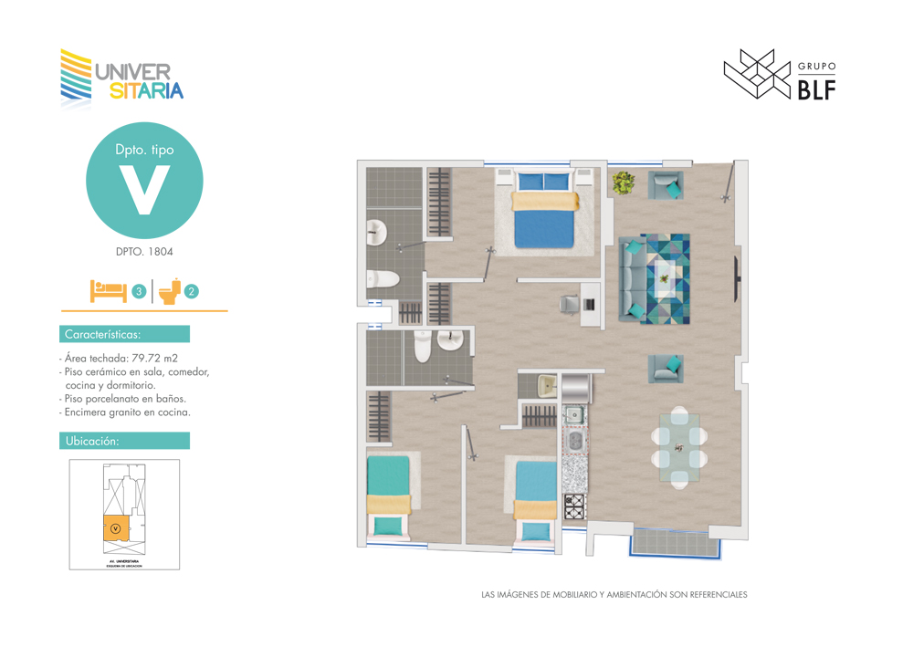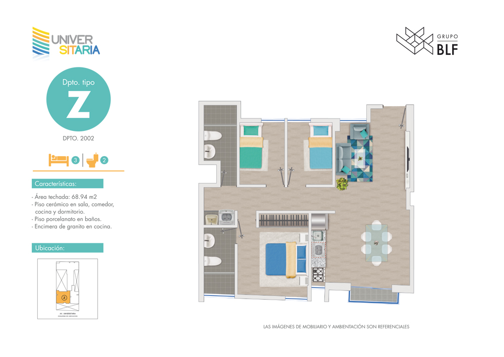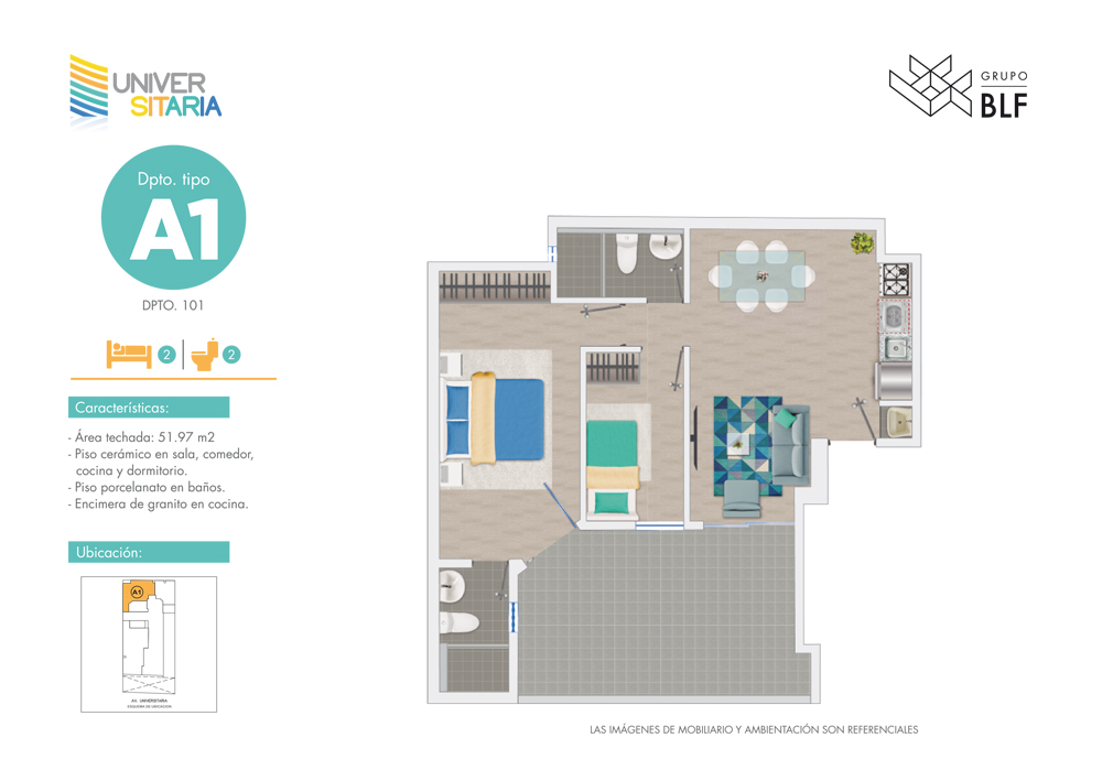 Una propuesta inmobiliaria enfocada en cubrir las necesidades de vivienda y seguridad de los estudiantes. Una gran propuesta inmobiliaria con una oferta de 104 departamentos tipo flat de 1,2 y 3 dormitorios que van desde 28 m2 hasta los 79 m2 para cubrir en gran parte la demanda existente.